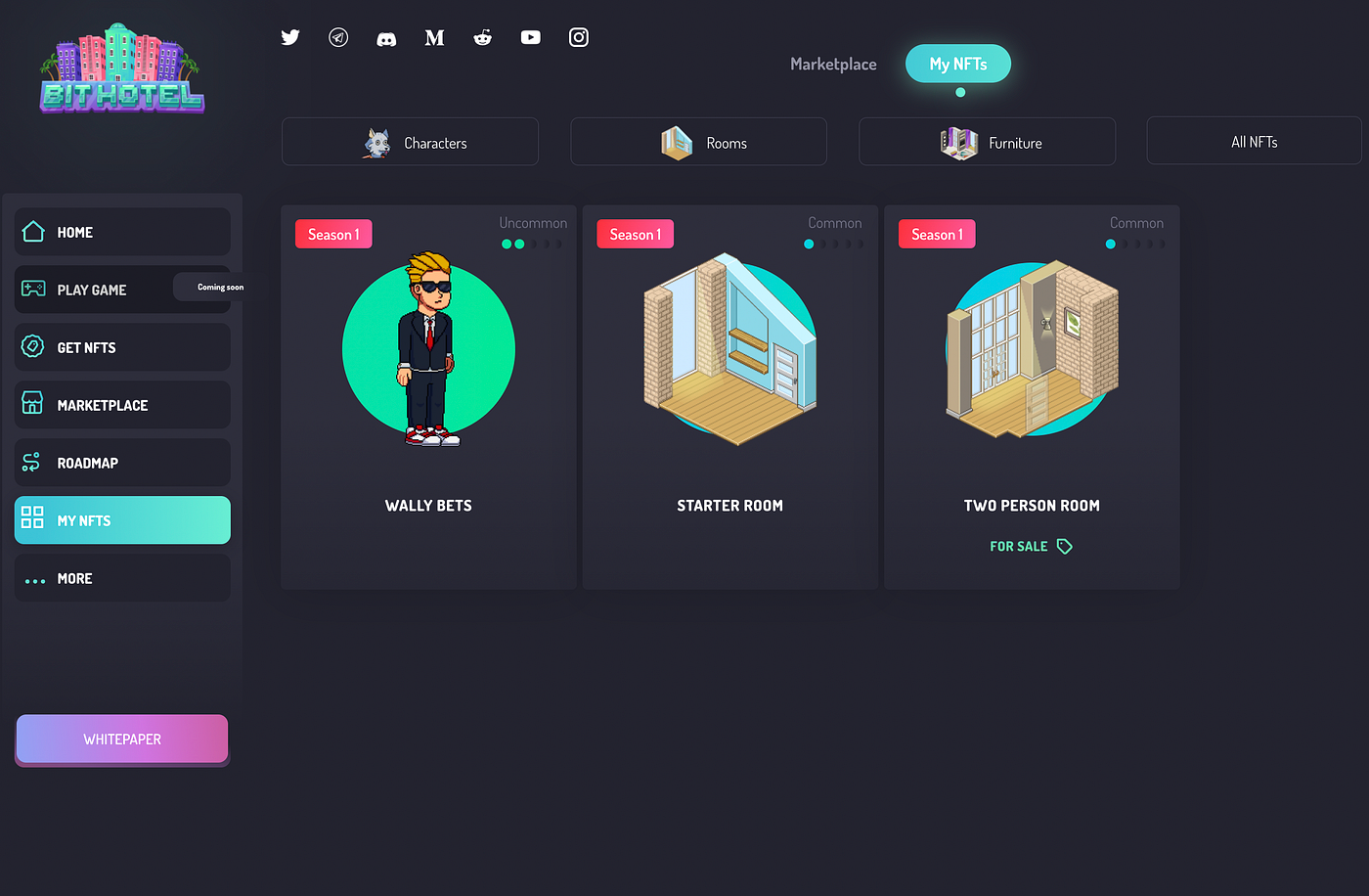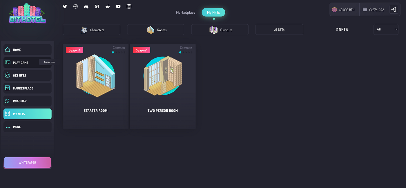 Whether you are a trader, investor or gamer the Bit Hotel NFT Marketplace is a place you don't want to miss. With hundreds of NFTs listed and changing hands this part of the eco-system is where a large chunk of value is created. Now let's see how it works shall we?